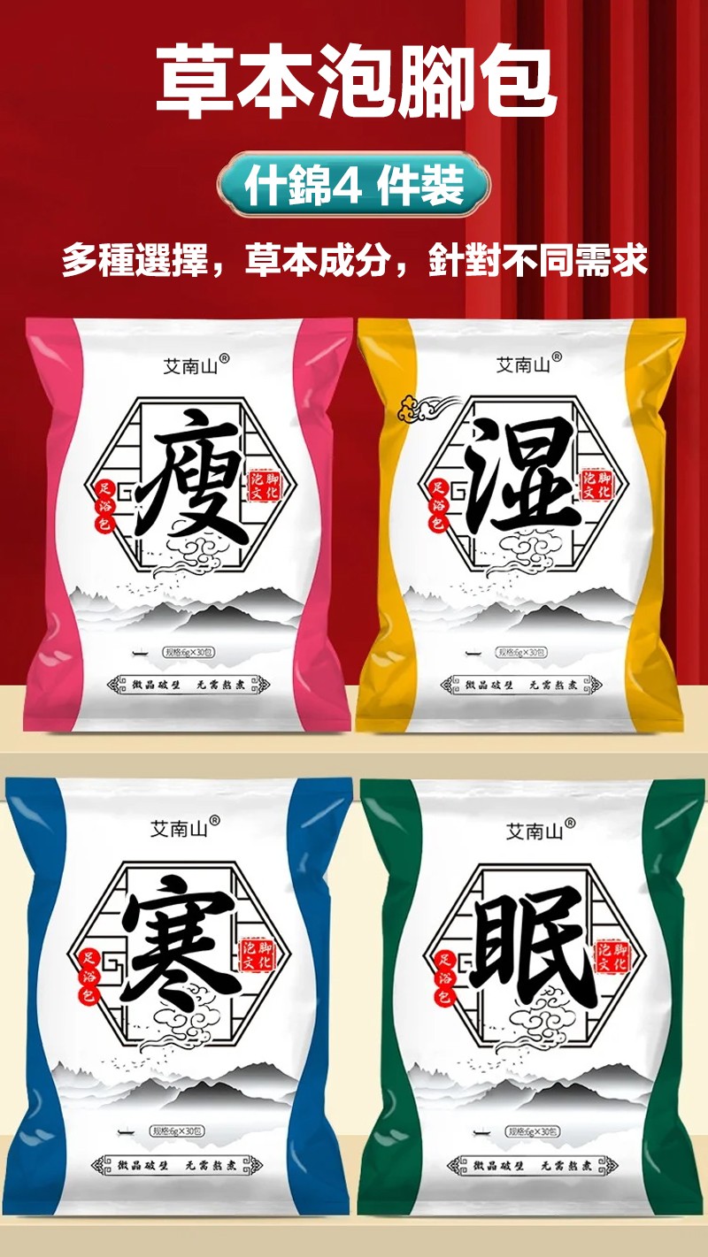 4分鐘前艾草足浴包 草本配方,真材實料,四季皆宜,驅寒排濕,促進血液循環,改善內分泌,提高睡眠質量, - 超值嘗鮮【四款配方任選2入組*60包 均價16】-NT$899