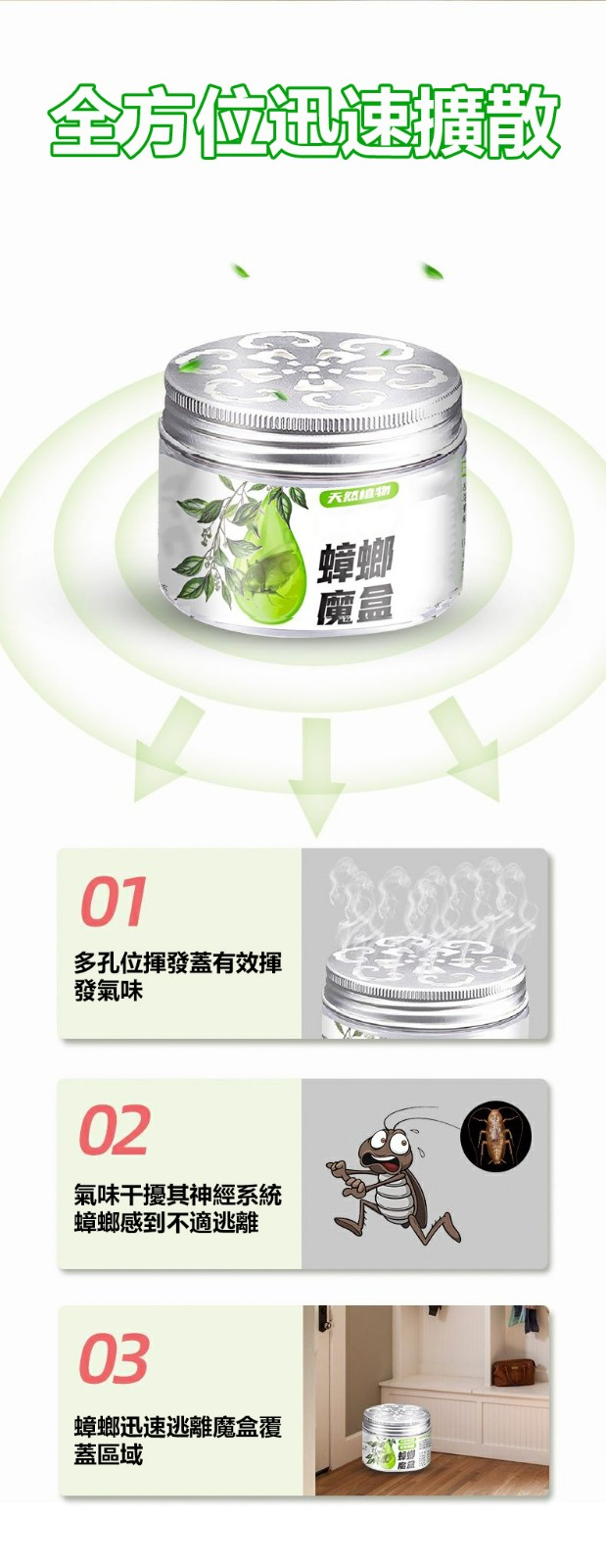 5分鐘前【日本驅蟲魔盒】蟑螂的生命力太頑強了!家裡只要有一隻那可就糟了,要不了幾天就會氾濫了!趕緊在家裡放這個【蟑螂魔盒】植物萃取不刺激,還能淨化空氣。母嬰可用,給家裡安裝一道屏障,讓蟑螂無處藏身 - 10入組NT$1198