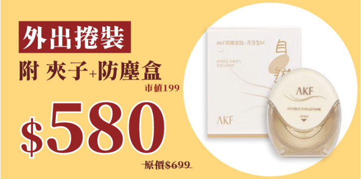 2分鐘前日韓熱銷TOP1【AKF電眼貼】#快速黏貼 #隱形無痕 #防水又防汗/秒變迷人電眼完美隱形貼合/千位女孩票選/命定雙眼皮貼就是它 - 【外出捲裝】附 夾子 & 防塵盒一入組NT$580